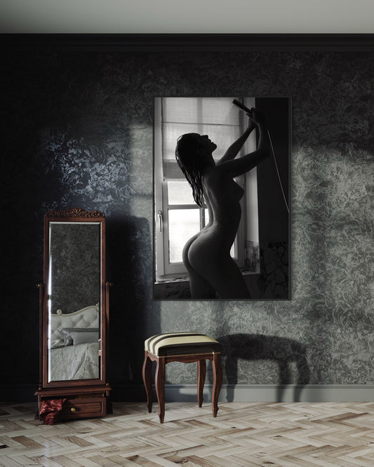 Crafted with meticulous attention to detail, this print is more than just a photograph; it is a celebration of the subtle interplay between light, shadow, and form. Ideal for those who appreciate the finer aspects of art and sensuality, this piece adds a touch of sophisticated glamour to any space.